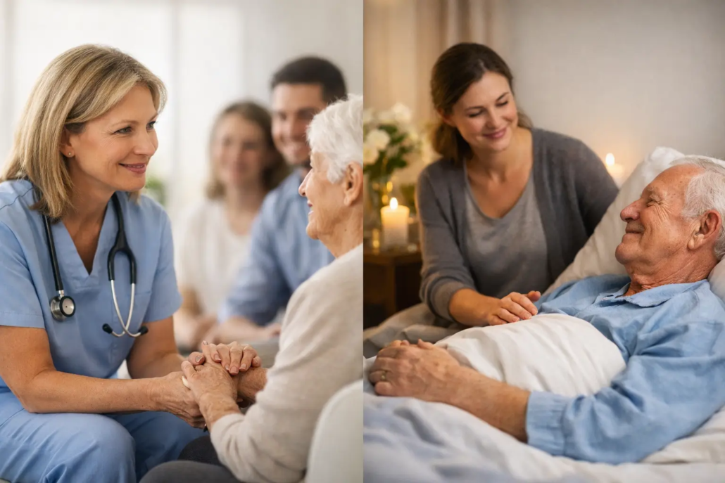 That means both may involve pain relief, symptom control, advance care planning and emotional support. Both can be delivered with great compassion. Both may also include support for relatives who are carrying a heavy emotional load.